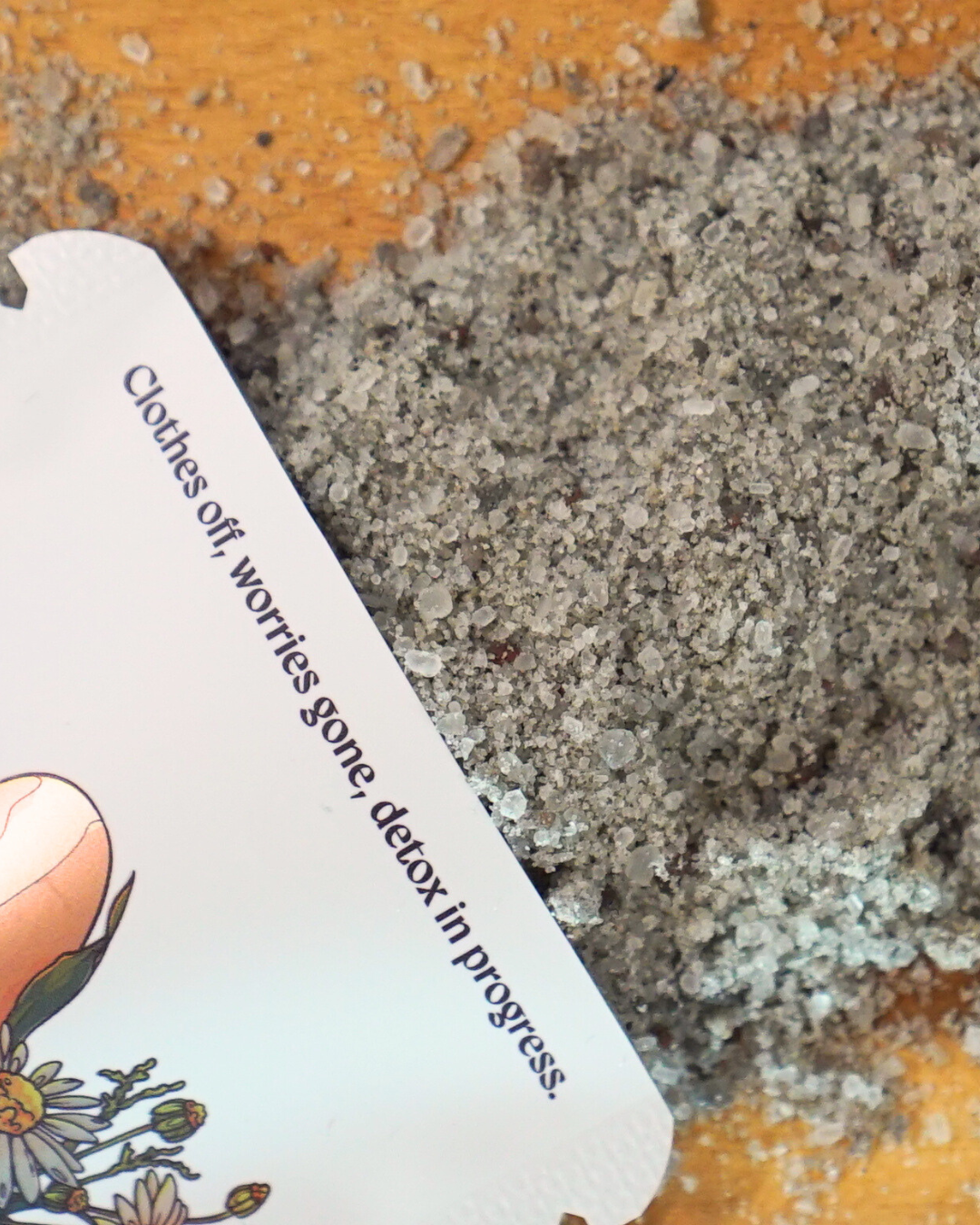 Directions: Warm water. One handful. Sink in. That's it—you're done. The soak takes it from here.
